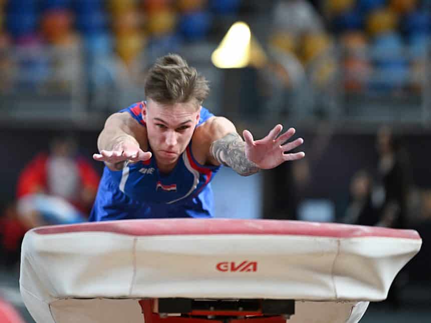 Prije Benovićevog nastupa, vodeći je bio fenomenalni Filipinac Carlos Edriel Yulo koji je za svoja dva preskoka dobio prosječnu ocjenu od 15.116 čime je bio jedini gimnastičar s ocjenom preko 15.000 poslije prve petorice finalista. Benović ga nije uspio ugroziti.